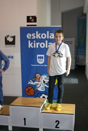 DSCN0059 25 de abril de 2015 300 × 448 Ander Tafall Campeón Infantil e Ivan Iturralde Campeón Alevín del Escolar Individual de Gipuzkoa. Patxi Moreno, Subcampeón Infantil