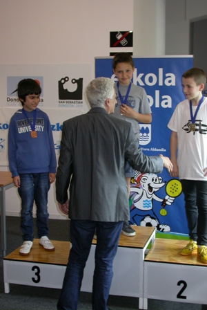 DSCN0061 25 de abril de 2015 300 × 448 Ander Tafall Campeón Infantil e Ivan Iturralde Campeón Alevín del Escolar Individual de Gipuzkoa. Patxi Moreno, Subcampeón Infantil