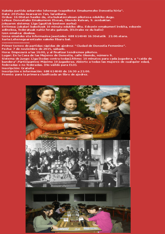 securedownload 7 de noviembre de 2015 745 × 1053 Hoy penúltima ronda de los campeonatos individuales Gipuzkoa 2015. Más ecos del Bilbao Chess Festival y otros torneos