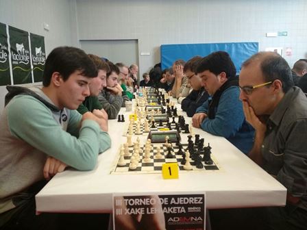 Este domingo 7 de enero de 2018 una amplia representación del club ha tenido una nueva cita de Ajedrez solidario con la celebración del Tercer Torneo Benéfico ADEMNA en el Colegio Público Joaquín Lizarraga de Sarriguren, organizado por la Asociación de Esclerosis Múltiple de Navarra (ADEMNA), en colaboración del Ayuntamiento Valle de Egües, la Federación Navarra de Ajedrez y el Club Ajedrez Orvina. Un torneo suizo de 7 rondas a 10 minutos finish por jugador que ha contado con la participación de 120 jugadores. La inscripción era de 5 euros y la recaudación íntegra ha sido donada a la Asociación de Esclerosis Múltiple de Navarra. El torneo ha estado muy bien dirigido por su director, Gonzalo Mombiela, al que felicitamos como cabeza visible de este muy bonito torneo. ZORIONAK!