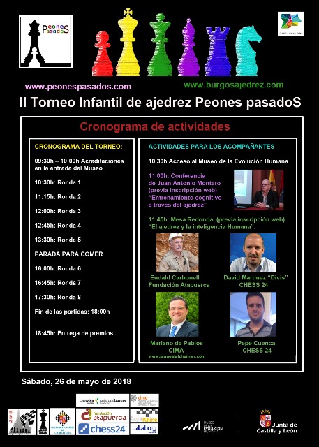 peones-pasados-2018-ponencias 27 de mayo de 2018 457 × 640 Muy buena actuación de nuestra expedición en el IIº Torneo Peones PasadoS jugado en el MEH (Museo de la Evolución Humana de Burgos)