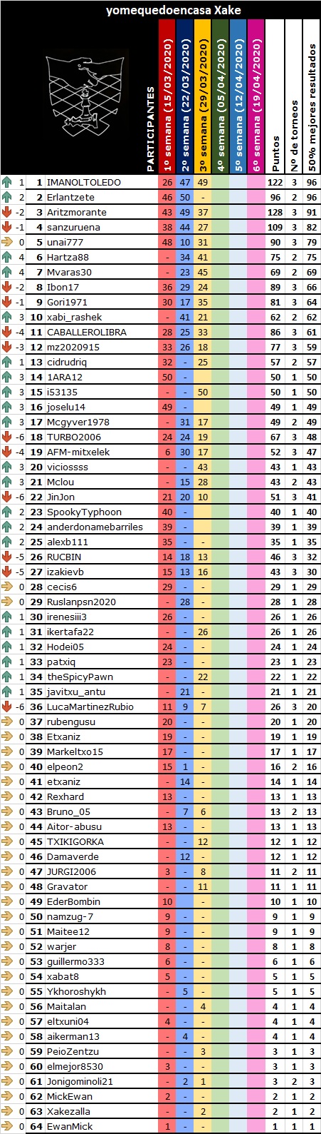 Hoy por la tarde, ha tenido lugar el segundo día de la nueva competición de clubes/equipos vascos denominada Batalla por Equipos AJEDREZVASCO en Lichess.org, con dos grupos de equipos que se jugará de lunes a viernes, bajando los tres últimos del grupo A y subiendo los tres primeros del grupo B cada ronda. Nuestro equipo ha jugado en el grupo ha y lo ha hecho verdaderamente bien, logrando mantener la categoría. La victoria ha sido para el Orvina (información del torneo de hoy aquí), Zorionak!!!.