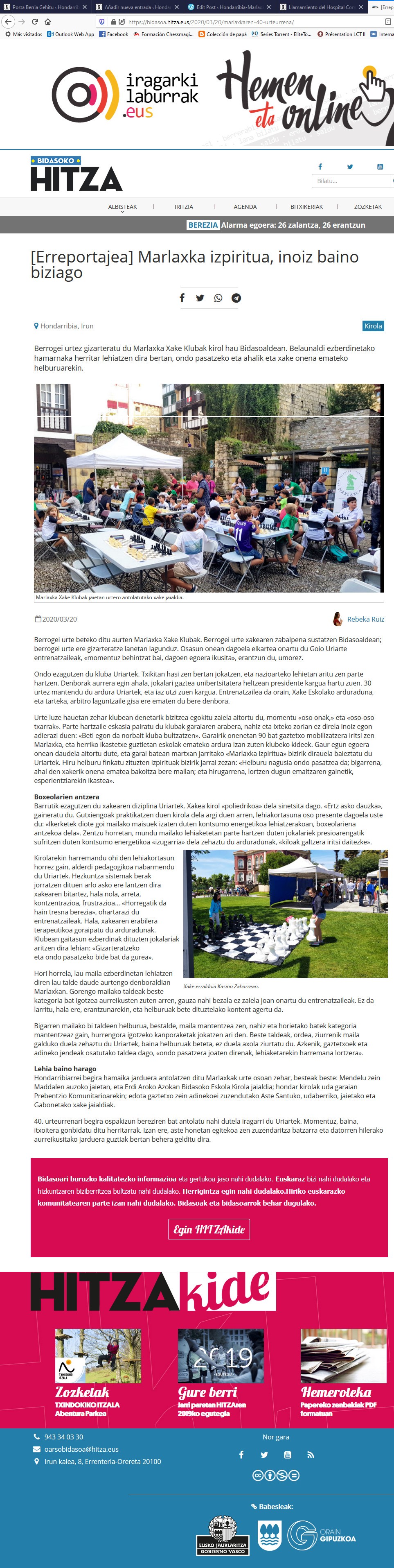 1980-2020 ¡40 años al servicio del ajedrez y los ajedrecistas en la Comarca del Bidasoa!