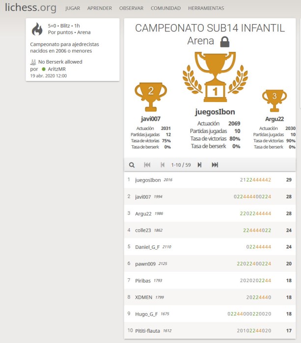 2020-04-19-1CE14 19 de abril de 2020 613 × 699 Muy animado 1er Open escolar con más de 250 jugadores. Gracias y felicidades a todos los participantes. Zorionak!!! nos ponemos a trabajar en el próximo!!!!!!! Y recuerda #YoMeQuedoEnCasa.