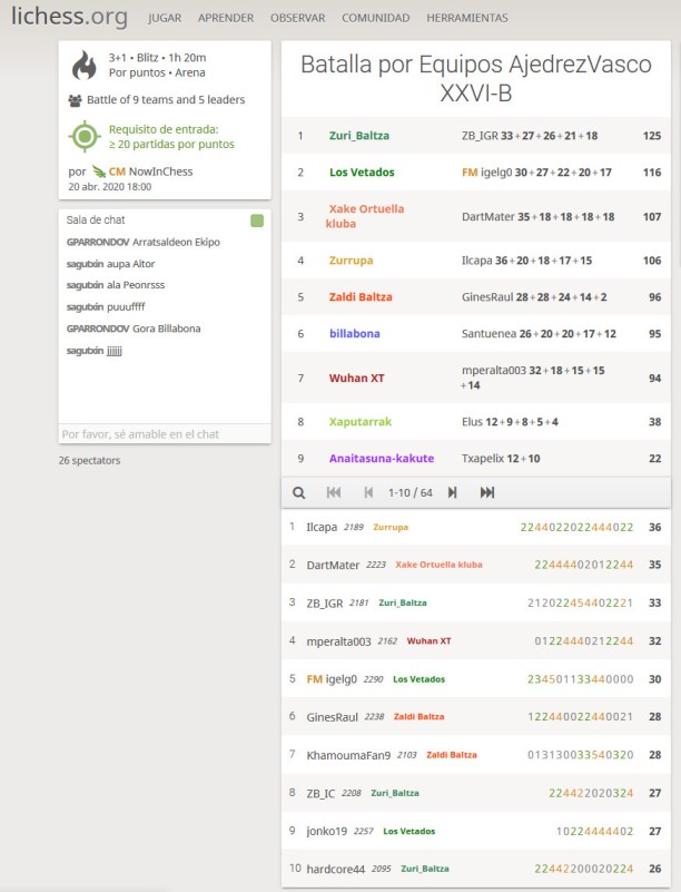2020-04-20-AV-B 20 de abril de 2020 612 × 801 Hoy ha comenzado la cuarta semana de la batalla por Equipos AJEDREZVASCO y en la categoría A, hemos logrado el octavo puesto y mañana jugaremos en el grupo B. Y recuerda #YoMeQuedoEnCasa.