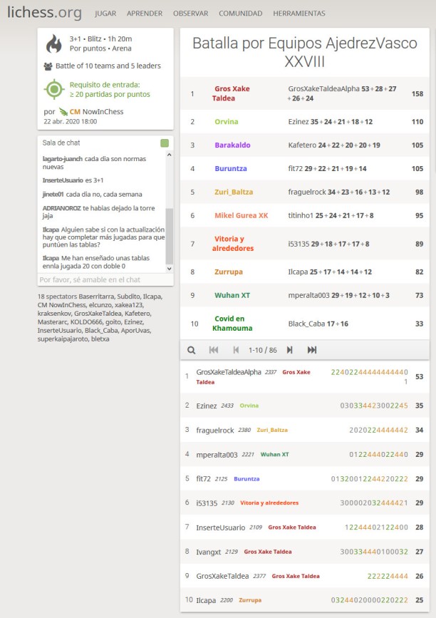 2020-04-22-AV-A 22 de abril de 2020 612 × 867 Resultados del torneo tras la clase de los miércoles de nuestra xake Eskola y de La batalla por Equipos AJEDREZVASCO. Primeros del grupo B por lo que mañana jugaremos en el grupo A. Zorionak!!! Y recuerda #YoMeQuedoEnCasa.