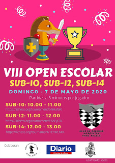 Volvemos una semana más con los torneos escolares por categorías. ¡Ya vamos ocho semanas juntándonos! ¿Quién nos lo iba a decir? Nosotros no paramos mientras no lo hagáis vosotros. Por lo que aquí os dejamos los enlaces de esta semana. Recordad: misma hora, misma contraseña (xakea). ¡Os esperamos!