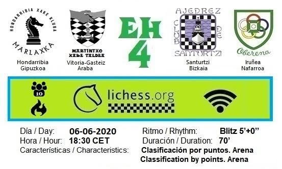 El sabado 6 de junio, a las 18:30 horas, en Lichess, se volveran a enfrentar en una batalla de confraternización los equipos Hondarribia Marlaxka, Martintxo Xake Taldea (Vitoria-Gasteiz), Club Ajedrez Santurtzi y el Club Deportivo Oberena (Pamplona-Iruñea). En esta ocasión están invitados el Salou Chess Club (y su escuela de ajedrez Club Escola D’escacs Salou – Tarragona), , el Club de Ajedrez de Pielagos (Cantabria), el club de ajedrez Jeruchess (Israel), club Ajedrez Villa Mercedes de Argentina y esta semana debutan el club XDM Escola CIDU A Coruña (Galicia ) y el club Francistown School of Chess de Francistown (Botsuana). Enlace al match: https://lichess.org/tournament/qzGarQPE