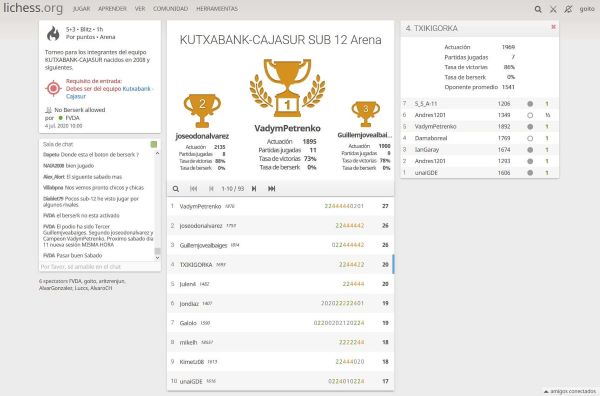 2020-07-04_121559 4 de julio de 2020 600 × 396 Esta mañana en Lichess se ha jugado el torneo Kutxabank – Cajasur con participación marlaxkera en todas las categorias. Zorionak!!! Y resultados del campeonato de Euskadi femenino disputado hoy.