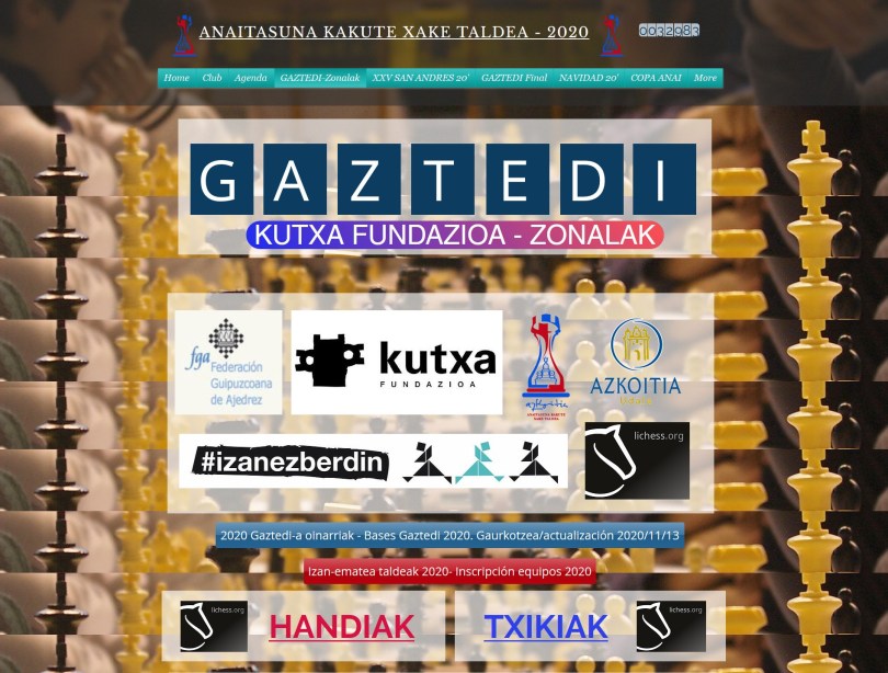 Semana llena de acción: Clase con nuestras chicas mayores el lunes, Clases de la Xake Eskola el martes, miércoles y jueves, terminados con animados torneos en lichess, el viernes, última clase de tecnificación de noviembre con IM Franco, y hoy, sábado, se ha jugado la primera jornada del Zonal Gaztedi Kutxa!!! y recuerda hasta el 4 de diciembre Euskaraldia 2020. nuestro club y nuestra Xake Eskola son Arigunea-s. “Euskaraz: Gehiago, gehiagorekin eta gehiagotan”