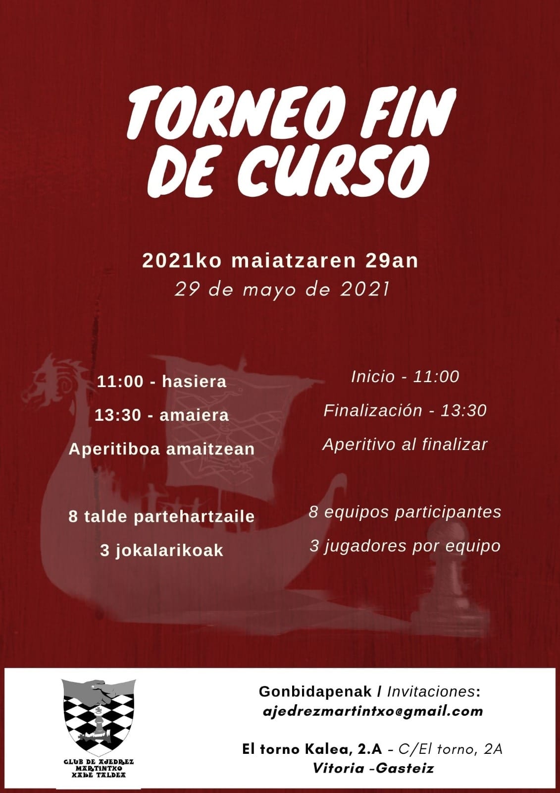 Numerosas actividades durante la semana. El sábado por la mañana torneo fin de curso de los amigos de martintxo con presencia marlaxkera. Por la tarde, Segunda jornada del torneo «1er Suizo Kutxa FGA » por equipos». Y el domingo, 35 jugadores han participado en nuestro zonal Lichess clasificatorio para la final de las Jornada de Tecnificación on-line de 2021 Gipuzkoa. Hoy, en Bergara, también se ha celebrado el campeonato individual de Euskadi de rápidas (por la mañana) y el campeonato por equipos (por la tarde) con la representación de nuestro club.
