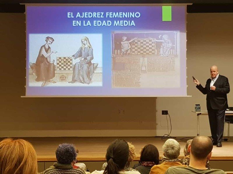 WhatsApp Image 2021-11-08 at 23.05.48 10 de noviembre de 2021 800 × 600 Azaroa Liburutegian: Xakea. El sábado tuvimos partidas simultáneas en la biblioteca y hoy la primera jornada del curso abierto y gratuito que ha resultado muy animado. Luego preciosa conferencia titulada Ajedrez y Mujer de la mano de Leontxo Garcia. Y el viernes, tendremos la presentación del comic “Los reinos del ajedrez” con su autor Rafa Nuñez ¡Pásate por la biblioteca, ven!