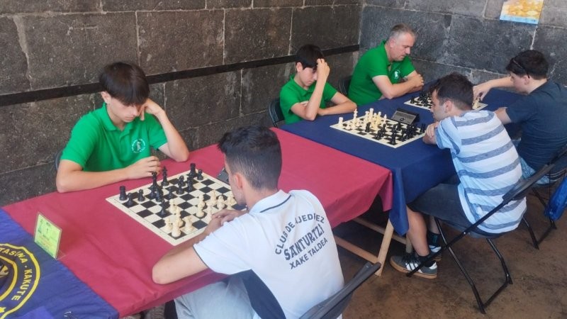 Imagen de WhatsApp 2025-06-29 a las 12.51.16_1178afb7 29 de junio de 2025 800 × 450 Ayer por la mañana Patxi Moreno quedo 3º en el campeonato de Euskadi de ajedrez rápido individual jugado en Bergara y por la tarde se celebró el 39º Ciudad de Eibar Memorial Kruzeta, organizado por los amigos del Club Deportivo Eibar con 9ª posición para los nuestros. Y hoy por la mañana, se ha disputado el excelente 43º Torneo Villa de Azkoitia 14º memorial Joxe Azkue, donde nuestro equipo ha finalizado octavo!