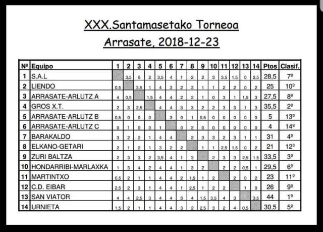Hoy 29 de diciebre, al mediodía, ha terminado en el local del club Arrasate San Andres Xake Taldea el fuerte torneo internacional que organiza por Navidad y en que ha competido nuestro compañero Daniel Garmendia. El Open ha sido dirigido por Txema Hernando y Mikel Almansa ha sido el árbitro principal. El torneo ha sido un suizo de cinco rondas a ritmo clásico que se ha jugado jugará los días 26, 27, 28 (ronda doble) y 29 de diciembre. Han participado 34 jugadores, cubriendo todas la plazas disponibles, entre los que destacan los IM (Maestros Internacionales) Mikel Huerga (ganador en 2015) y Alejandro Franco (ganador del torneo en 7 ocasiones, la última en 2014) y los Maestros FIDE David Astasio (ganador en 2016) y Alain Prieto (ganador en 2007).