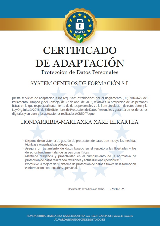 Esta actualización se ha realizado conforme al Reglamento (UE) 2016/679 del Parlamento Europeo y del Consejo (RGPD – GDPR) y a la Ley Orgánica 3/2018, de Protección de Datos Personales y garantía de los derechos digitales, garantizando la adaptación plena a los requisitos legales establecidos.